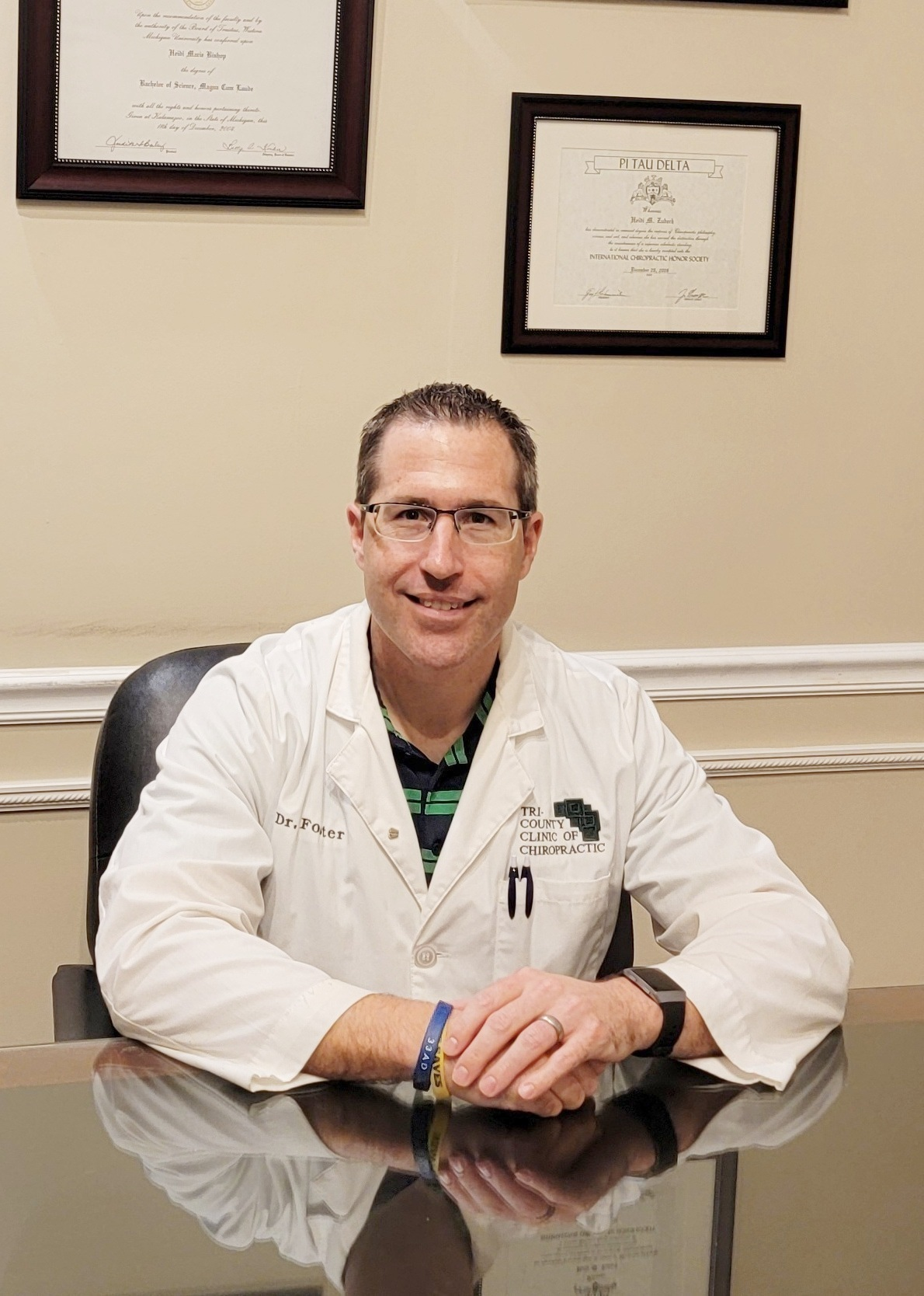 Hi. I’m Dr. Chris Foster, D.C. I grew up with my parents and two older sisters in a small Michigan town in the thumb area (Michiganders do use their hand as a map). I was an avid golfer and bowler, shooting a hole-in-one as well as five 300-games in bowling. At 17, I went to the upper peninsula of Michigan to visit with family and discovered that one of my cousins was a Chiropractor. I didn’t know anything about chiropractic at the time, so I decided to shadow his practice. After just a few days I was hooked, and I was bound and determined to become a chiropractor. I learned from my cousin, that through proper chiropractic adjustments, patients could not only feel better from aches and pains, but they also got healthier overall—their digestive systems started working better, sinus and allergies started decreasing, and blood pressures were going down! I thought it was amazing to see that the power that made the body does heal the body, so long as there is no interference to the nervous system.